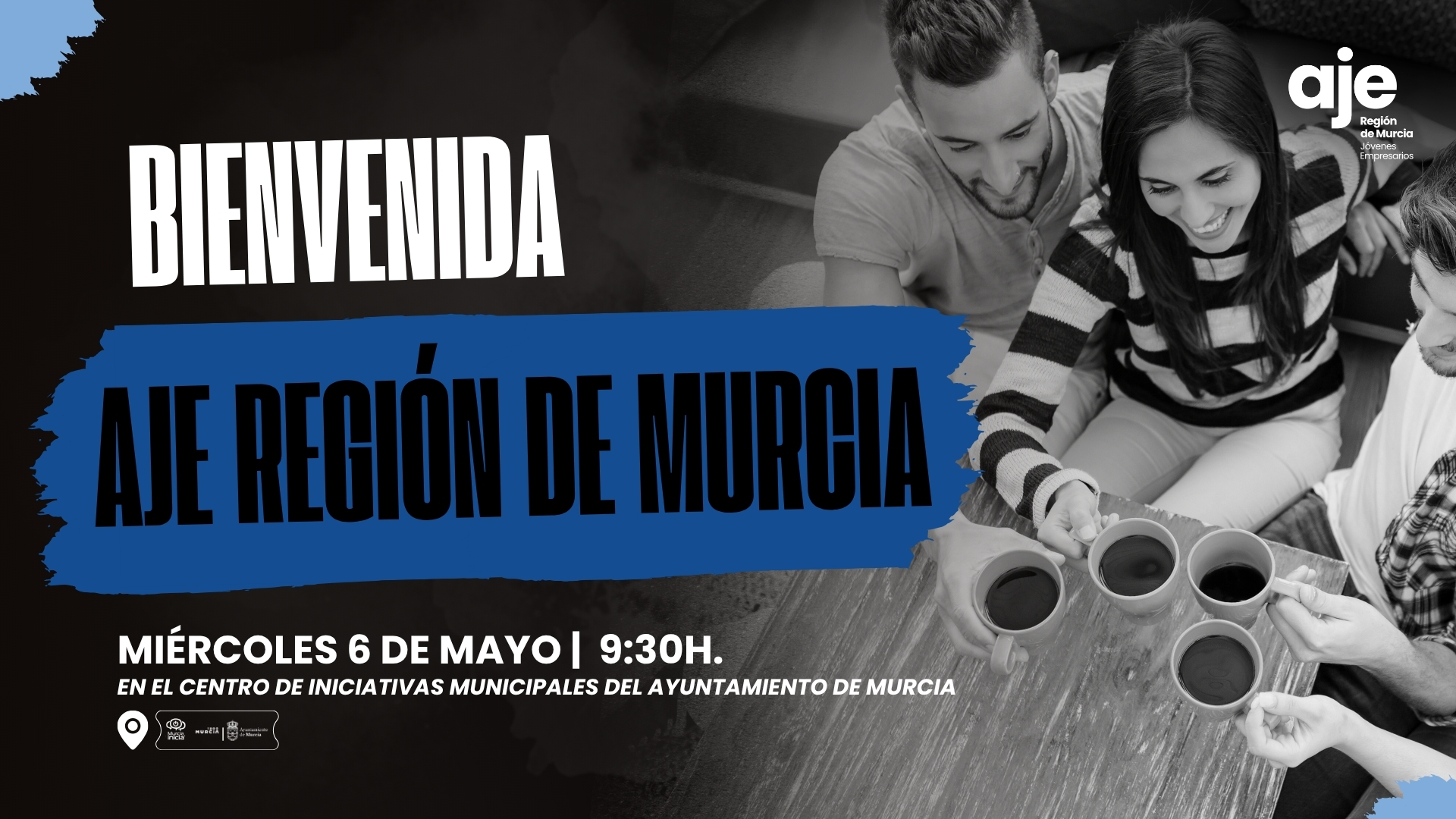 Este encuentro está diseñado para que conozcas a otros nuevos miembros y te sientas acompañado desde el primer momento. Te contaremos más sobre nuestras actividades y eventos, y responderemos todas tus preguntas. Queremos que, a partir de ahora, cada evento de AJE Región de Murcia sea un espacio donde te sientas identificado y motivado a participar activamente.