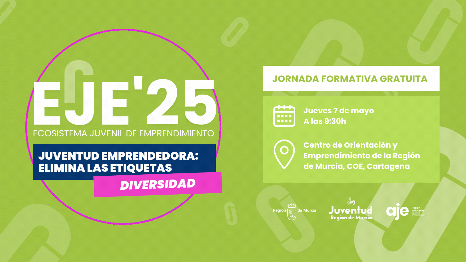 Cartagena acogerá el encuentro “Juventud emprendedora en diversidad: elimina las etiquetas” el próximo jueves 7 de mayo, una jornada dirigida a jóvenes emprendedores y profesionales interesados en impulsar proyectos comprometidos con la diversidad, la inclusión y la igualdad de oportunidades. Esta iniciativa se enmarca dentro del proyecto EJE'25 (Ecosistema Juvenil de Emprendimiento), impulsado por la Dirección General de Juventud, con la colaboración de AJE Región de Murcia.
