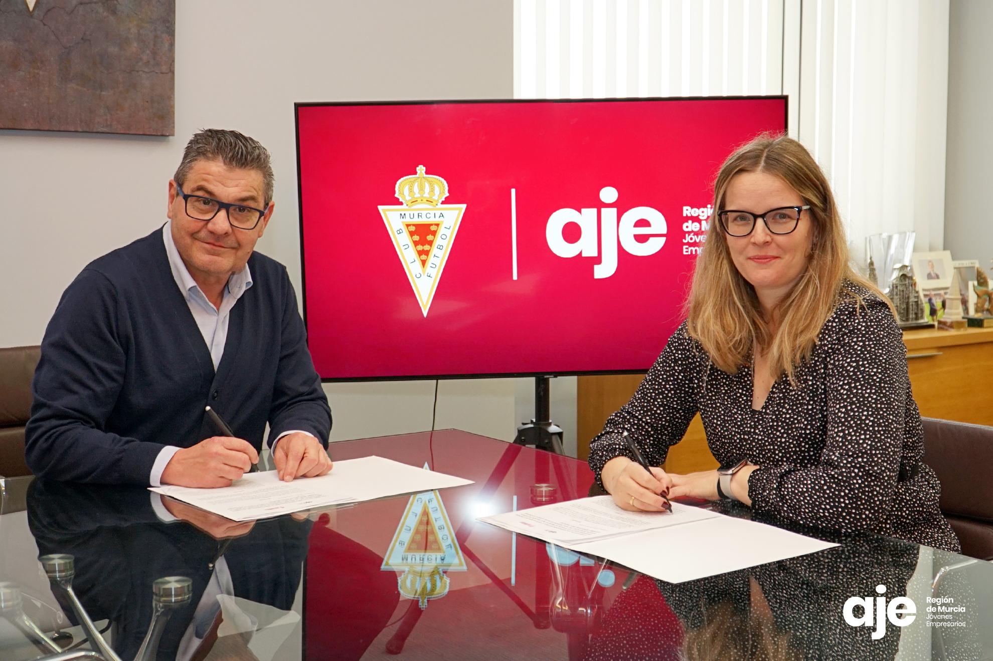 AJE Región de Murcia y el Real Murcia C.F. seguirán caminando juntos durante una temporada más, consolidando una colaboración clave para el desarrollo comercial del club y el fortalecimiento del tejido empresarial de la Región.