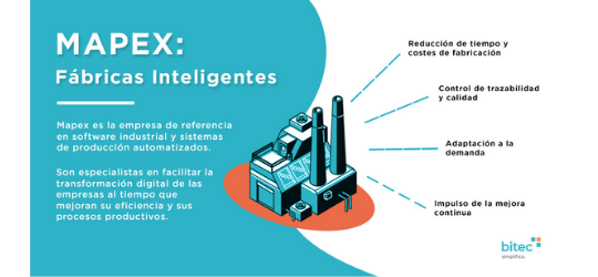 Mapex es la empresa de referencia en software industrial y sistemas de producción automatizados. Son especialistas en facilitar enormemente la transformación digital de las empresas industriales al tiempo que mejoran su eficiencia y sus procesos productivos.
