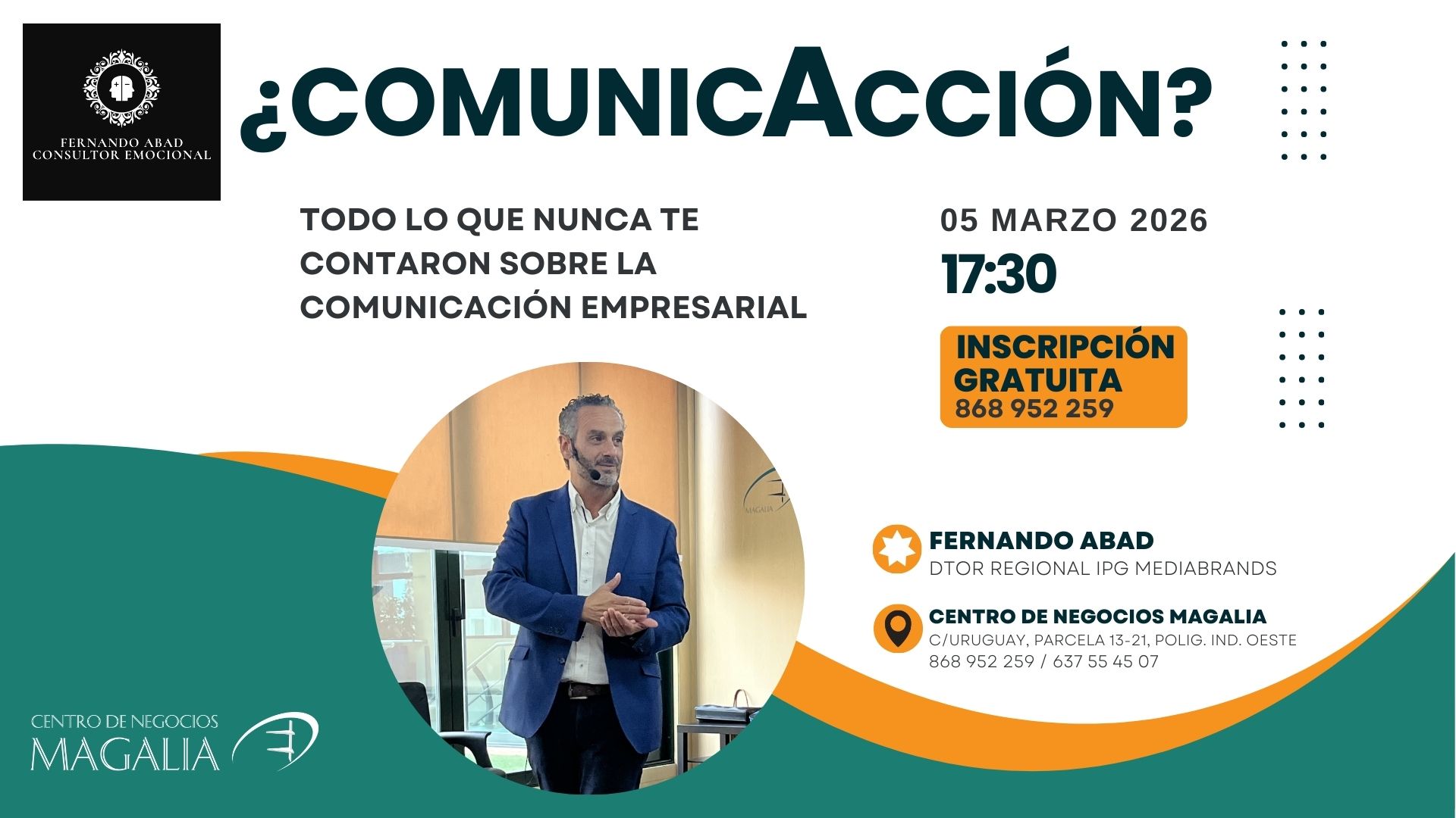 El próximo jueves 5 de marzo de 2026, Fernando Abad ofrecerá una ponencia en la que abordará todo aquello que nunca se contó sobre la comunicación empresarial y cómo aplicarla de forma estratégica para lograr mejores resultados.