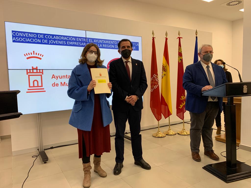 AJE Región de Murcia ha firmado un convenio a través del Servicio de Empleo y Promoción Económica para la puesta en marcha del Plan de Empleo y Promoción Económica del Municipio de Murcia 2021-2023 con el objetivo de fomentar el autoempleo como eje principal de la economía del municipio, beneficiando a autónomos y emprendedores murcianos.