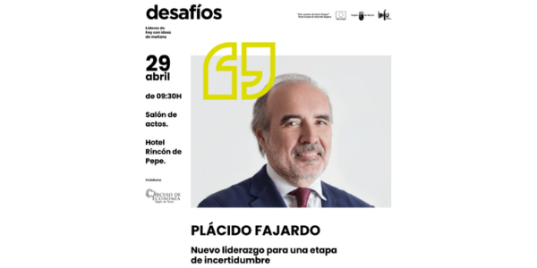 El Instituto de Fomento de la Región de Murcia organiza el 29 de abril en el Salón de Actos del Rincón de Pepe una jornada de desafíos: Plácido Fajardo, Nuevo liderazgo para una etapa de incertidumbre.