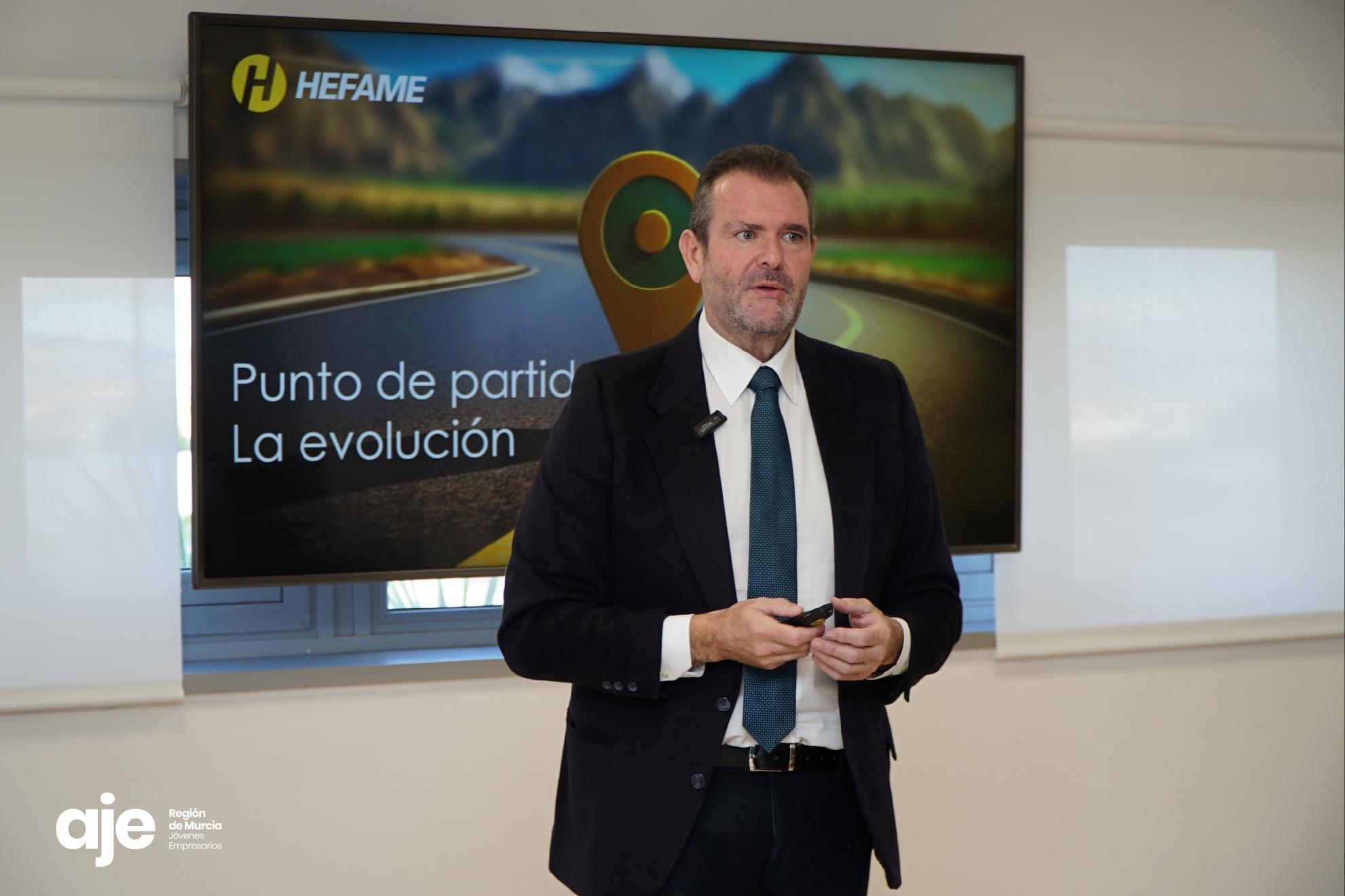 Durante la jornada, celebrada en el marco de las actividades formativas y de networking que impulsa AJE Región de Murcia, el presidente de Hefame presentó la evolución y los principales hitos de Hefame, centrándose en el modelo cooperativo, crecimiento sostenido y su apuesta estratégica por la innovación, la digitalización y la sostenibilidad. Asimismo, expuso los datos más relevantes de la compañía, los proyectos estratégicos y sus desafíos de cara al futuro.