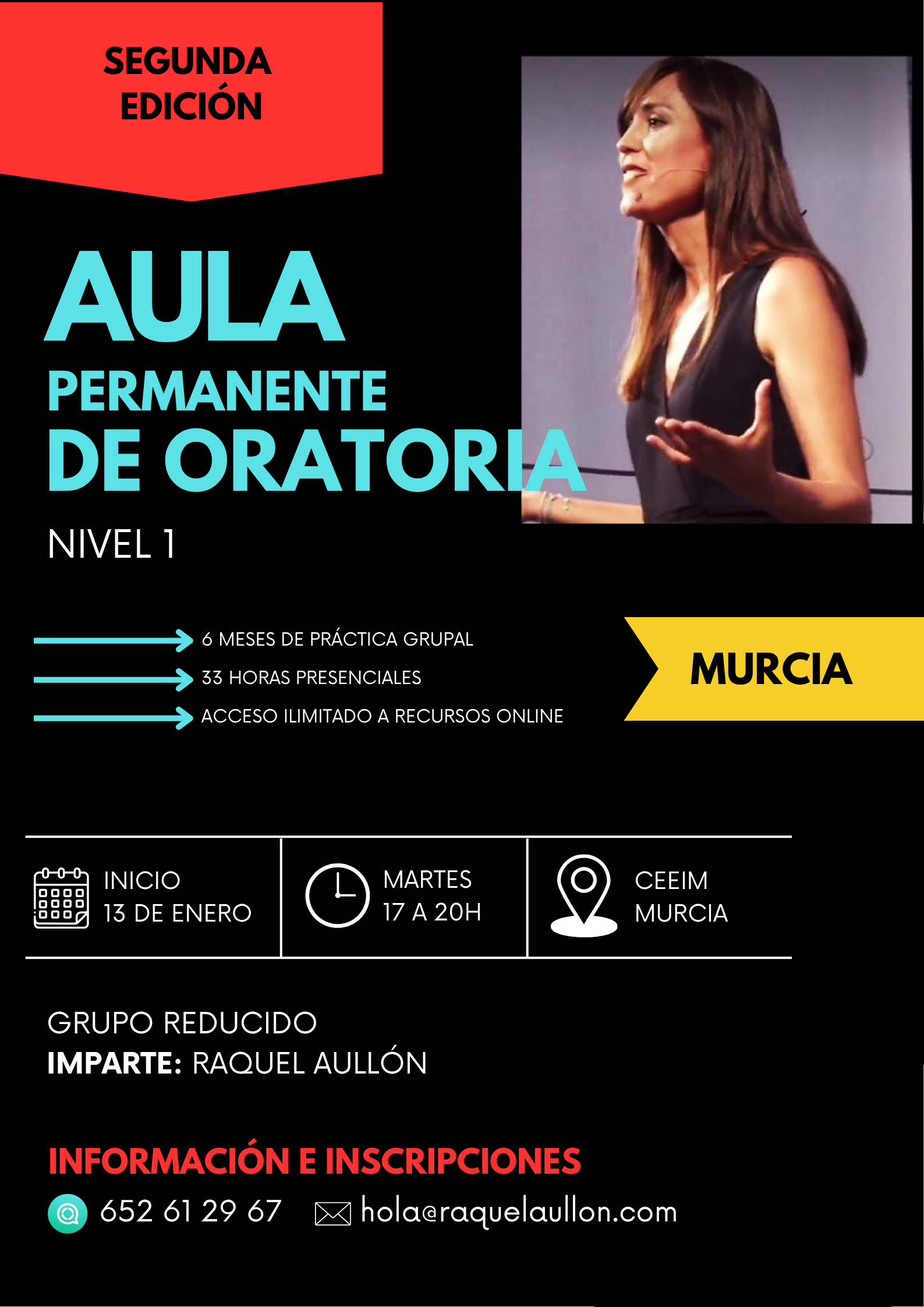 El Aula Permanente de Oratoria es un nuevo formato en el que durante 6 meses podrás practicar y mejorar tu comunicación. ¿Cómo lo haremos? Con dos sesiones presenciales al mes y un aula virtual en la que podrás seguir aprendiendo a tu ritmo y por tanto tiempo como quieras. En total, serán 33 horas presenciales que compartirás con un grupo reducido. El calendario de clases presenciales ya está cerrado, para que puedas organizarte sin problemas.
