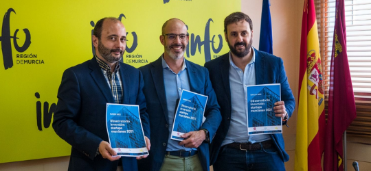 El pasado 23 de mayo, Javier Fernández Gallardo, director del área de financiación y estrategias de startups de Innoventures Capital SL, junto con Joaquín Gómez, director del Instituto de Fomento de la Región de Murcia, y Ginés Ángel García, presidente de AJE Región de Murcia, presentaron el Observatorio Inversión Starups Murcianas 2021.