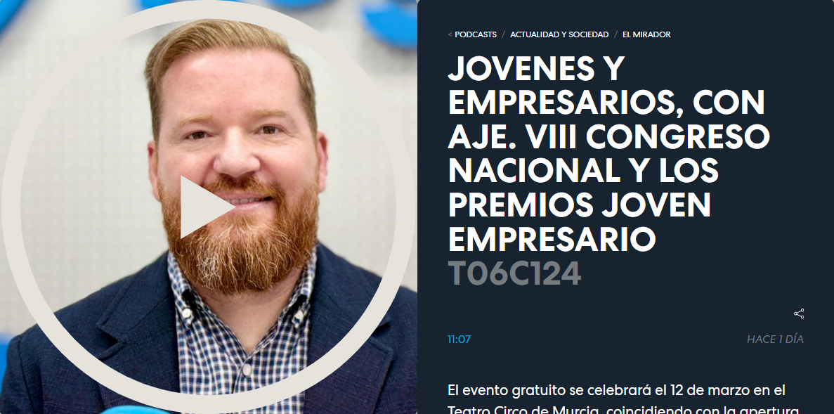 El director gerente de AJE Región de Murcia, David Lopera, ha participado esta semana en Onda Regional de Murcia para hablar sobre el VIII Congreso Nacional de Responsabilidad Social Corporativa “Empresas Responsables”, que celebraremos el próximo 12 de marzo en Murcia.