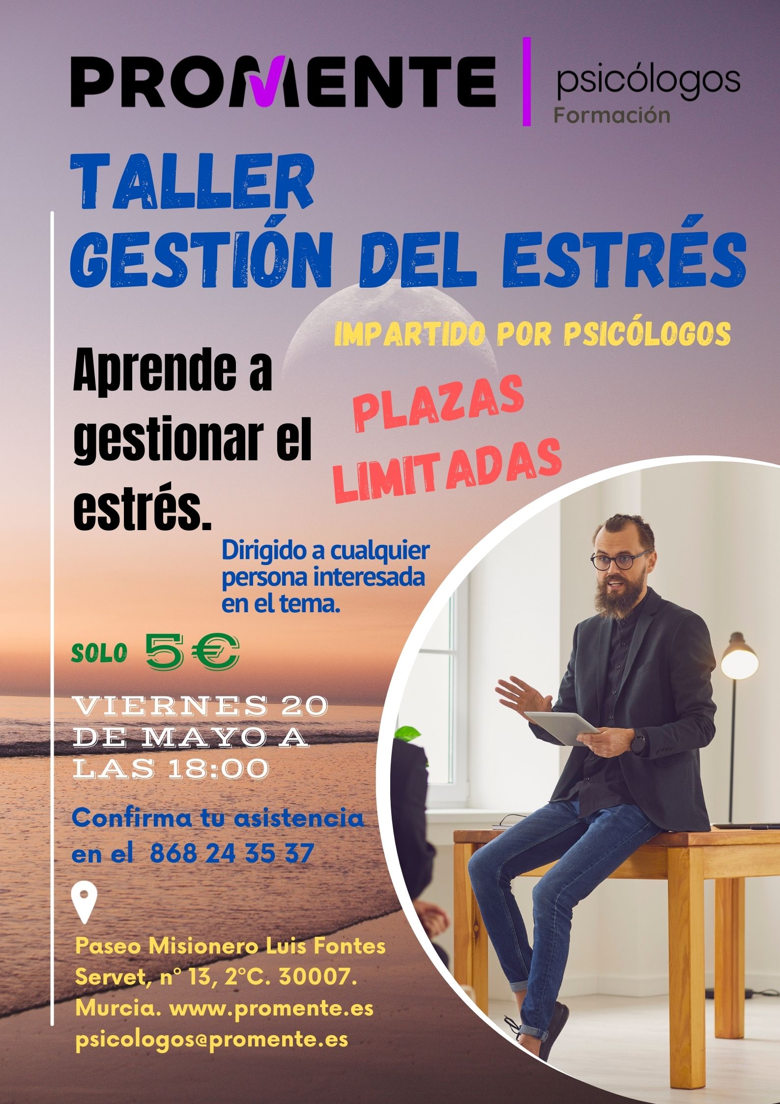 Nuestros asociados de PROMENTE organizan el próximo 20 de mayo a las 18:00h un taller para aprender a gestionar el estrés, impartido por psicólogos especialistas.