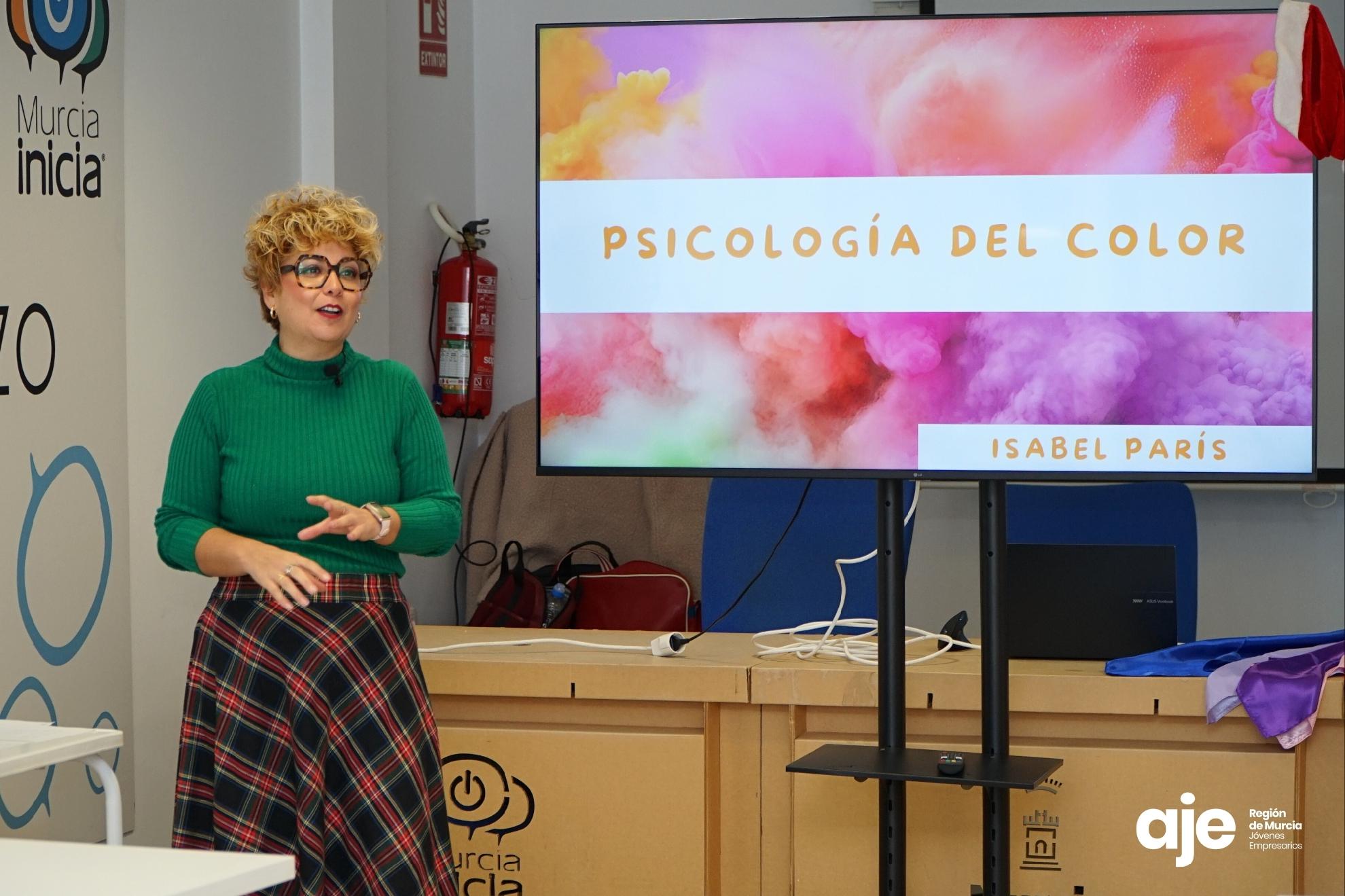Ayer tuvo lugar el taller “Psicología del color” dentro del Proyecto Integral de Empleo de AJE Región de Murcia, que fue impartido por Isabel París, una de las alumnas participantes en el programa.